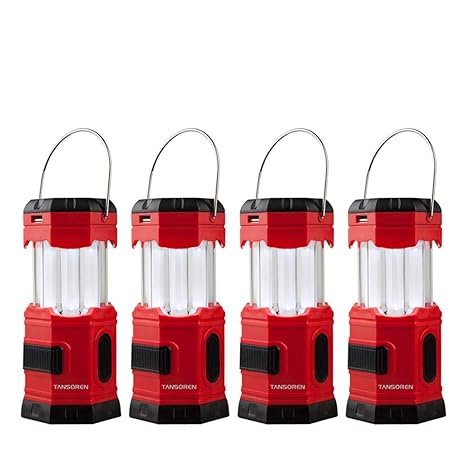 Amazons choice for solar rechargeable lanterns tansoren 4 pack portable led camping lantern solar usb rechargeable or 3 aa power supply built in power bank compati android charge waterproof collapsible emergency led light with s hook.