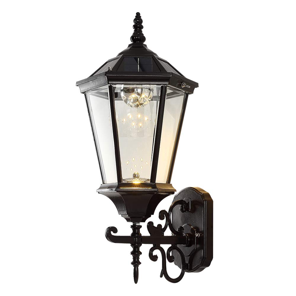 120 low price protection guarantee royal bulb 21h brushed bronze solar led outdoor wall light barn bronze. Solar wall light outdoor greenclick 2 modes motion sensor solar wall lights outdoorwaterproof flickering flames wall mounted solar lights for patio garden yard porch2pcs 45 out of 5 stars 27. This update to a classic lantern design with an attractive finial is crafted from rust resistant cast aluminum in a powder coated finish in several color options.